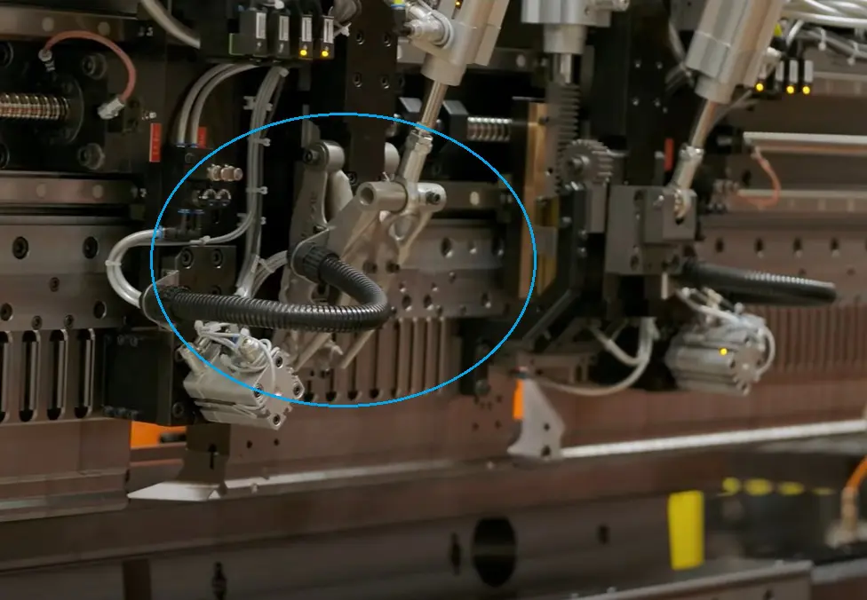 Het metalen onderdeel, een hefarm van een zetbank, zit midden in de machine en bestond eerder uit vijf onderdelen. Deze werden afzonderlijk van elkaar gefreesd en daarna gemonteerd. In een sessie met constructeurs werd gekozen voor een alternatieve oplossing.