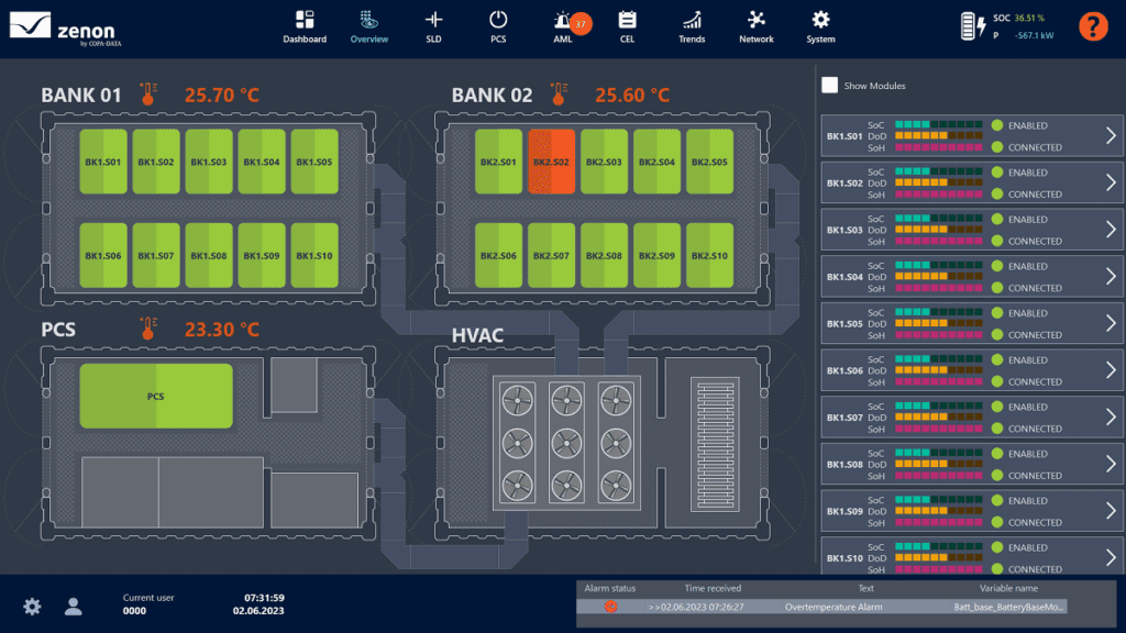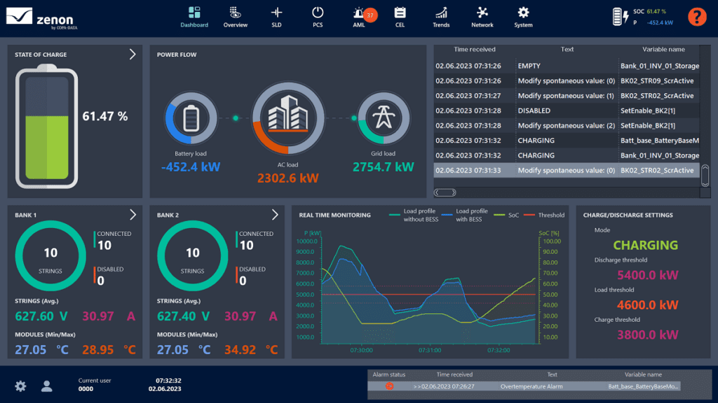 Zenon is een softwareplatform ontwikkeld door Copa-Data en biedt een uitgebreide oplossing voor efficiënte besturing, visualisatie en analyse van industriële activiteiten. Bij gebruik in een energieomgeving stelt Zenon operators in staat om de energieopwekking over een net te monitoren door data uit te wisselen met meerdere activa – of het nu gaat om klassieke energiecentrales, hernieuwbare opwekkingscentrales, onderstations of zoals nu voor gebruik in Bess.