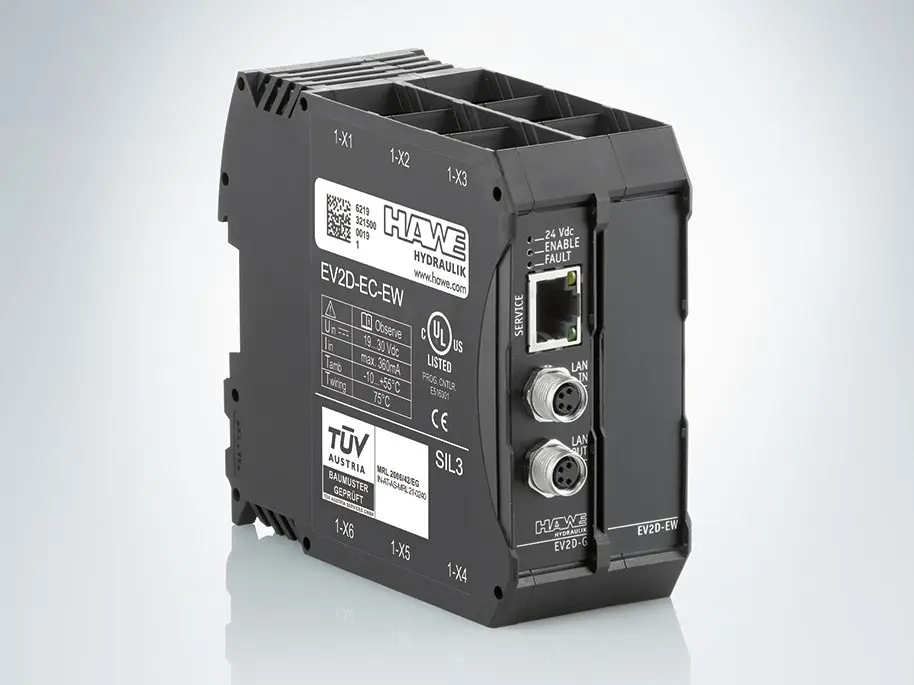 Voor de klepgestuurde kantbanksystemen van HAWE Hydraulik is een nieuwe digitale klepversterker ontwikkeld, die precies is afgestemd op de eisen. Deze voldoet met SIL3 aan de eisen voor machineveiligheid voor kantbanken.