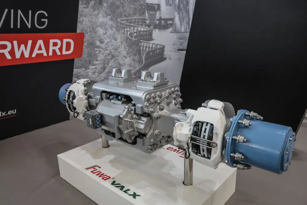FPT, motorenbouwer en zustermerk van truckfabrikant Iveco, bouwt een opmerkelijke en zeer zware E-as. Twee elektromotoren kunnen opgeteld 840 kW piekvermogen en 45.000 Nm koppel op de wielen zetten. Zonder versnellingen zou de efficiëntie op 92 procent liggen. Binnen de E-assen zijn allerlei constructies mogelijk, vaak staan de elektromotoren haaks op de achteras. Soms is het aslichaam nog steeds één doorlopend geheel, bij andere fabrikanten vormt juist de elektromotor met transmissie het hart en zijn de asdelen aan weerszijden aangeflensd. Die kunnen zowel mét als ook zonder naafreductie zijn uitgevoerd. Wat dat betreft lijken de mogelijkheden eindeloos, al is het onduidelijk in hoeverre de concepten zich in praktijk hebben bewezen. Noemenswaardig is ook het Nederlandse Smesh dat in een vroeg stadium al een E-as ontwikkelde waarbij alle techniek lineair ín de as is gebouwd. Dit concept lijkt de markt echter niet breed over te nemen.