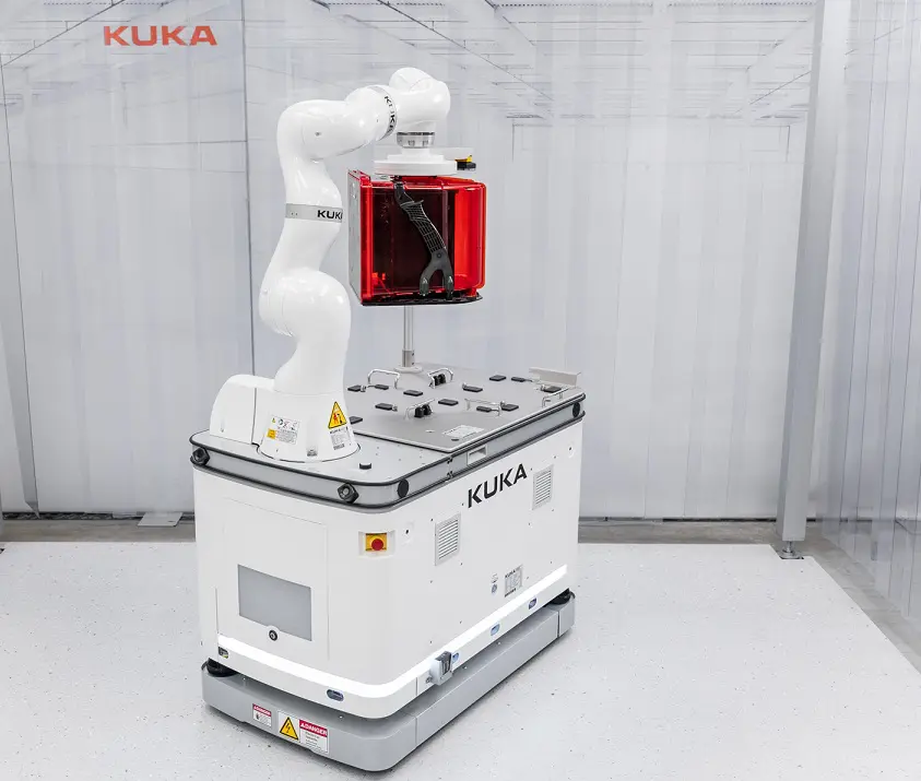 De wereldwijde honger naar microchips neemt razendsnel toe. Om aan deze grote vraag te voldoen, moeten producenten hun fabrieken verder automatiseren. Met de KMR iiwa CR, bestaande uit een samenwerkende robot en een mobiel platform, biedt Kuka een productiviteitsverhogende automatiseringsoplossing voor het transport van zeer gevoelige halfgeleidersubstraten (wafers). Dankzij de geïntegreerde laadtechniek van Wiferion voldoet het systeem aan de hoogste eisen van reinheid, productiviteit en veiligheid.