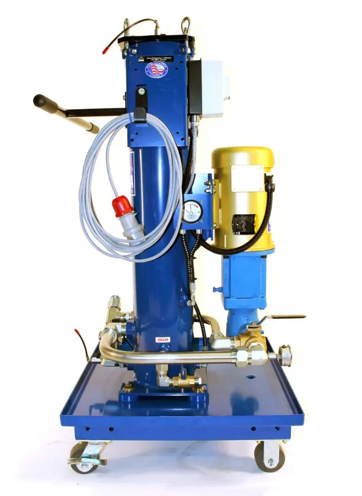 Met de FCL30 filterunit spoelen de specialisten van Hitma offline een hydraulisch systeem na een calamiteit, bij een oliewissel of als element van het onderhoud.