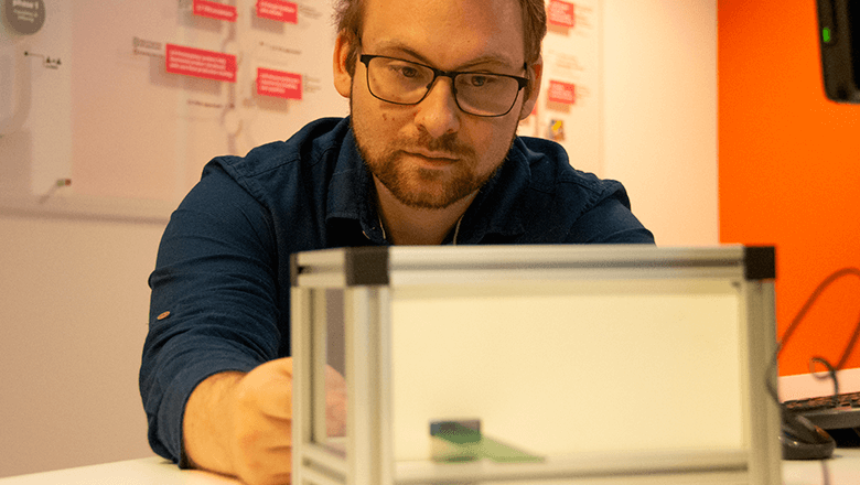 David Reuijl, R&D-engineer bij Sentech, constateerde dat gat in het sensorassortiment en ging op onderzoek uit. Zou het niet mogelijk zijn om een betaalbare, inductieve encoder te ontwikkelen die zonder problemen langere afstanden kan registeren? Dat er behoefte was aan zo’n systeem bleek anderhalf jaar geleden toen er een case voorbij kwam waar zo’n lange-slag encoder een uitkomst was geweest. De klant zocht namelijk een oplossing om zijn pick-and-place deltarobot nauwkeurig te kunnen positioneren over langere afstanden.