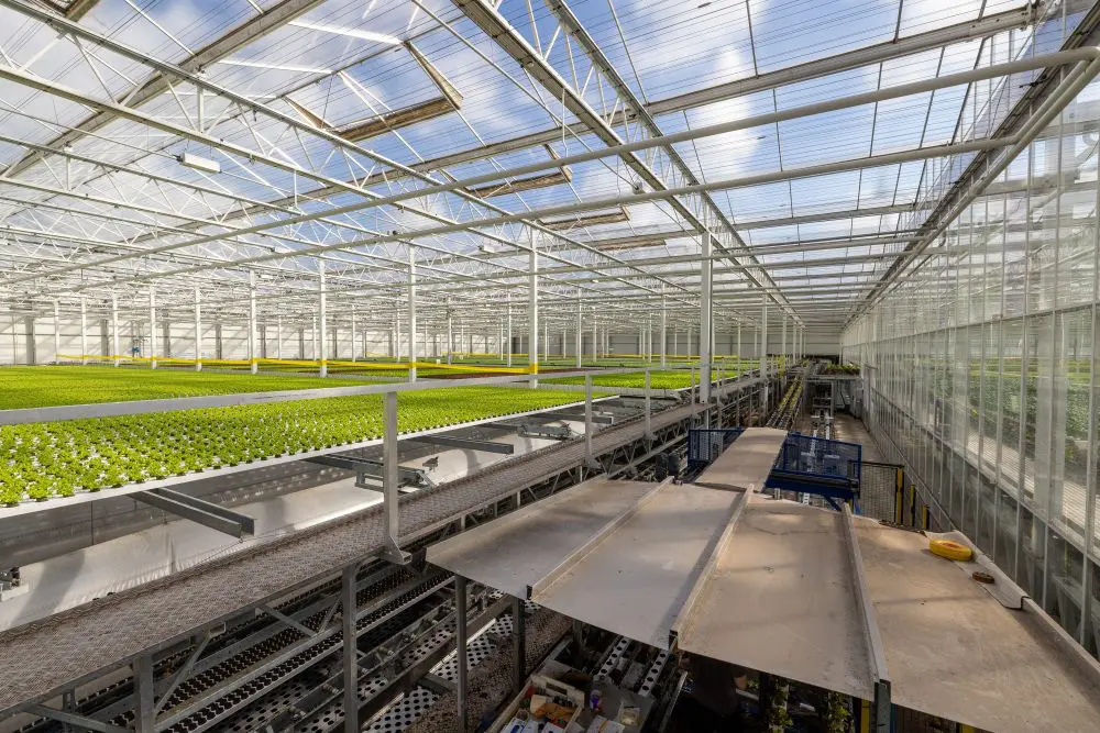 De kas is verdeeld in een opkweek- en een afkweekdeel. In de opkweek schuiven de beplante goten middels een elektrisch aangedreven systeem met vaste intervallen over een op twee verschillende hoogtes gemonteerde stalen verhoging telkens een positie op, per baan naar voren of naar achteren. Aan het eind van de baan komt de goot op een rollenband terecht om naar een van de overplantstations (spacing robots) te gaan. Deze staan langs de kanten van de kas opgesteld.