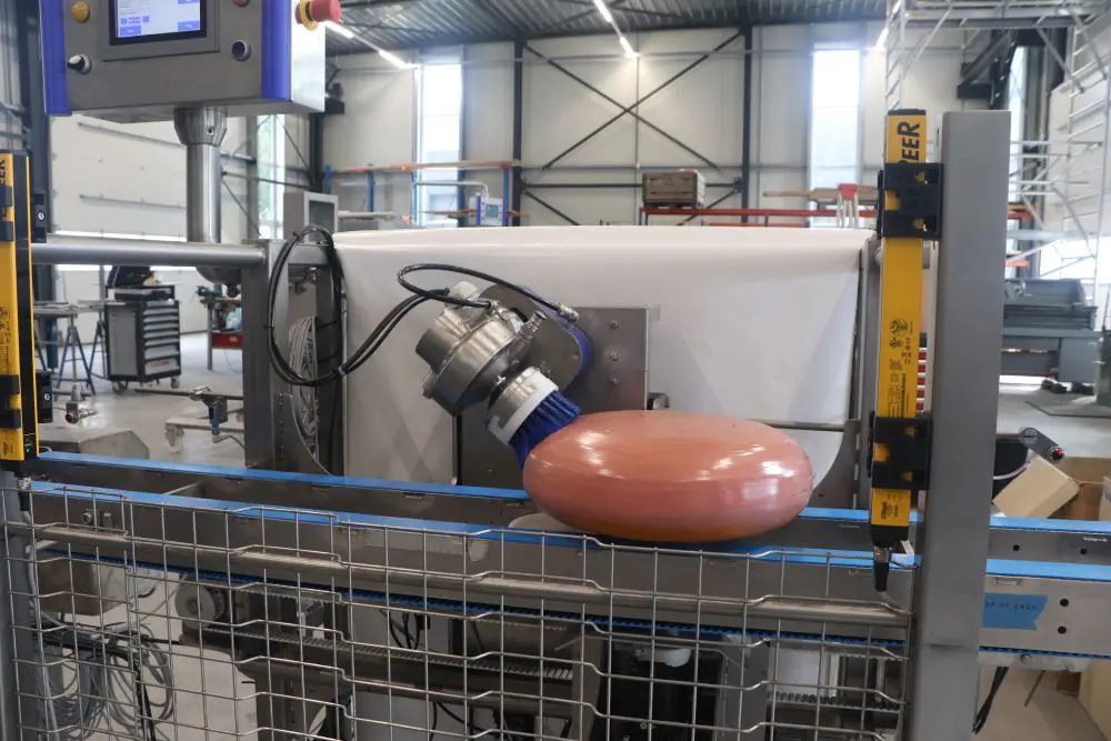Bij pekelkaas is er voor kaasmakers weer een heel andere uitdaging, zo vertelt Van der Voort. “Deze kazen zijn zo zacht dat ze uitzakken. Om dit te voorkomen hebben we een machine die er een banderol omheen legt. Dit geeft extra stevigheid en voorkomt vormverlies. Tot slot zijn er kazen die helemaal ingepakt moeten worden. Dit gebeurt met een omrokmachine.