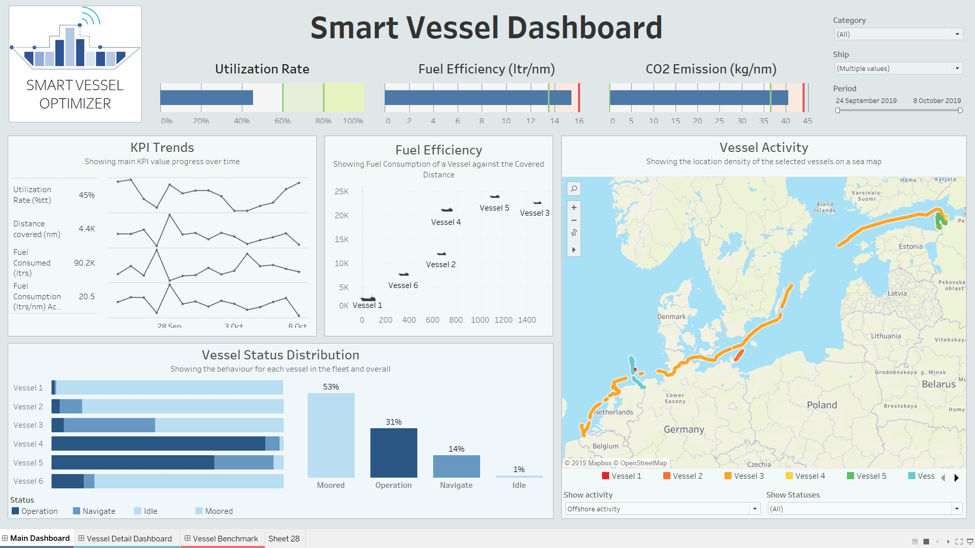 Het gebruik van Smart Vessel Optimizer verlaagt de operationele kosten en verbetert het rendement van schepen en processen. Door sterk verbeterde connectiviteit kunnen afdelingen en stakeholders binnen de scheepvaart en offshore via dashboards real-time essentiële informatie raadplegen en inzien.