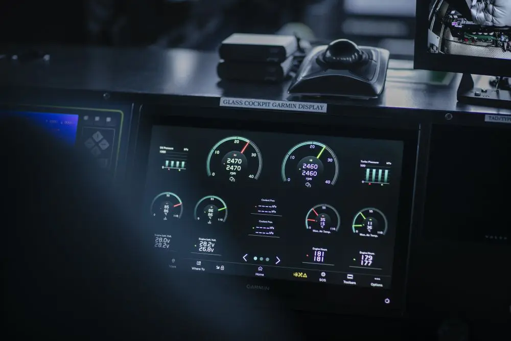 Binnenin de boot heb je een elektronicalaag die zowel de besturing van de onderdelen als de vermogensregeling integreert. Volvo levert het stuur, het gaspedaal, de joystick, de navigatieschermen en de meters. Dit noemt Volvo de ‘glass cockpit’. De fabrikant beschouwt zichzelf niet alleen als leverancier van maritieme aandrijvingen, maar als een maritiem technologiebedrijf dat één geïntegreerd voortstuwingspakket levert.