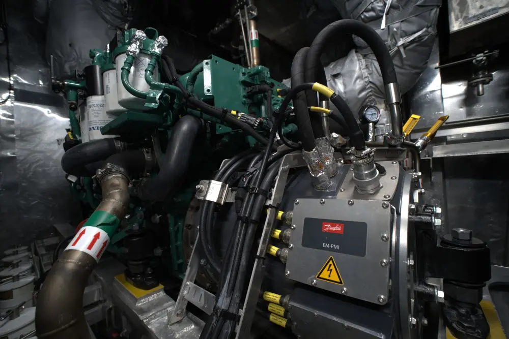 De volgende fase waar het bedrijf aan werkt, is het vervangen van één of beide tweemotorige inputs door elektromotoren, waardoor je veel flexibiliteit in de aandrijflijn krijgt omdat ze gevoed kunnen worden door generatorsets. Generatoren kunnen op conventionele diesel draaien, maar die van Volvo zijn gecertificeerd voor Hydrotreated Plantaardige Olie (HVO), waardoor de CO2-voetafdruk met 90-95 procent kan worden verminderd, afhankelijk van de HVO-specificatie. Volvo werkt ook aan de integratie van accupakketten en brandstofcellen als aanvullende energiebronnen.